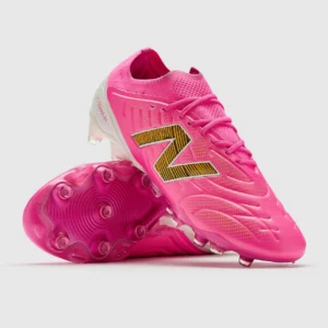 On the football field today, it’s not just about skill anymore; players’ boot styles speak volumes too! If you’ve been following recent European leagues or international matches, you’ve surely noticed a striking pair of ‘pink’ boots catching everyone’s eye on the pitch. Yes, I’m talking about the newly released New Balance Tekela V5 Elite (Pink Heat/Metallic Gold/Pink Satin/white).